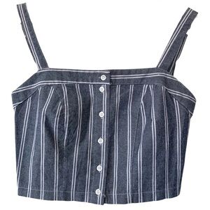 Brandy Melville Denim Like Blue & White Striped Crop Top Smocked Back One Size