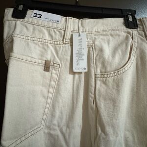 Stylish light tan flare premium jeans. Pleated at front with cropped wide legs. Perfect blend of comfort and fashion. New with tags.