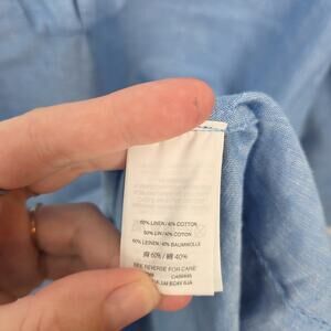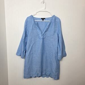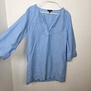 J. Crew Blue Linen Blend Chambray 3/4 Sleeve Coastal Beachy Scalloped Tunic Sz S
