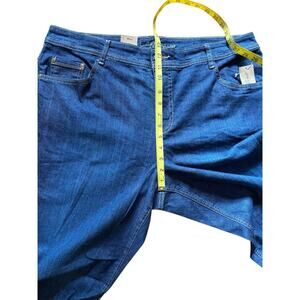 The NWT Charter Club Classic Jeans in Women's Size 18W are a stylish and versatile addition to any wardrobe. These dark wash straight leg jeans feature a classic fit with a high rise, fitted waist that sits above the hip, slightly loose through leg. Made from denim fabric with a stretch feature, these jeans are designed for comfort and ease of movement. The zip and button closure ensures a secure fit, while the machine washable care instructions make them convenient for everyday wear. Perfect for any season, these blue pants from Charter Club are a timeless choice for any woman's closet. Please see all photos and measurements.