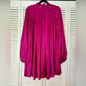 NWT Mac Duggal IEENA Magenta Long Sleeve Satin Cocktail Mini Dress