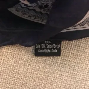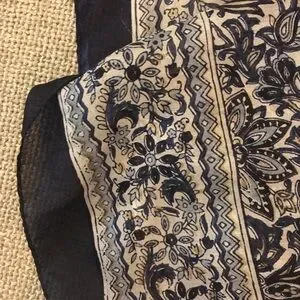 Large Floral Patterned Silk Scarf/Wrap in Blue, Cream and Gray