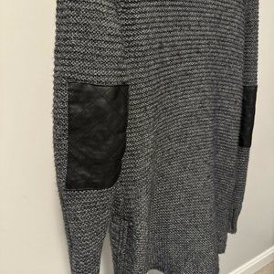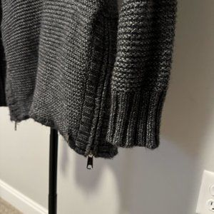 - Color: grey sweater with black faux leather patchwork on the arms and zipper detailing on the sides