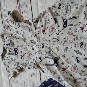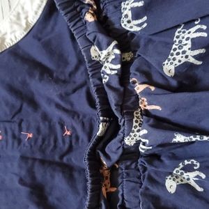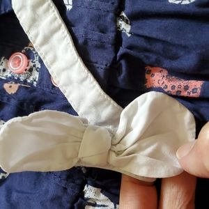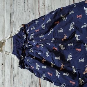 Two cute dresses for the price of one! Both from Gymboree in size 5T. First one is gray short sleeve with cute designs (hardly worn). One button closure in the back. Second one is one of my favorite dress for my daughter. It's a halter dress, navy colored with animal design. Cute pink button design in the front, elastic back. Halter is closed by one button. Both in good used condition.Smoke and pet free home.