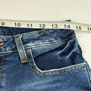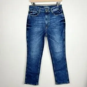 ModCloth Jeans Womens 30 Blue Boyish Straight High Waist Stretch Boho Chic Back Sewn Crease 29X28