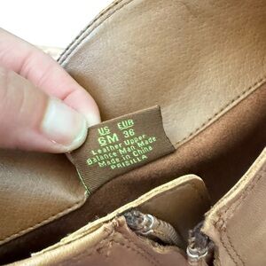 Sam Edelman boots. Style is Prisilla. Color is brown. Knee high. Zipper up the inside. Leather. SE logo emblem at ankle. Stacked heel. Round toe. Size 6