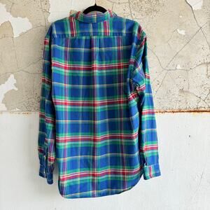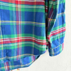 Classic Ralph Lauren Performance Plaid Flannel in that unmistakable collegiate plaid, cobalt blue layered with Kelly green, red, and gold. The Custom Fit cut gives it modern shape without losing the cozy, brushed texture of a traditional flannel. Mid-weight fabric with stretch performance blend keeps it breathable, warm, and easy to move in. A true cold weather essential that balances heritage prep, from campfires to city weekends.