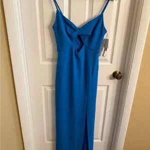 Aqua Vibrant Blue Cut-Out Maxi Dress Stretchy SZ 6 NWT