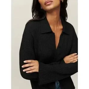 Reformation Fantino Cashmere Collared Cardigan in black
