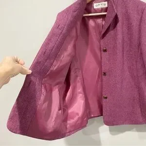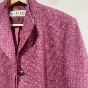 Elegant pink blazer by Orvis. Classic design with a tailored fit. Perfect for formal occasions.