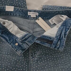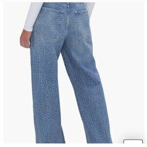 NWT Anthropologie Good American Good Ease High-Rise Rhinestone Wide-Leg Jeans 27