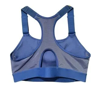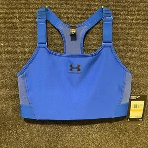 Women's blue sports bra by Under Armour. Features a sleek design with supportive straps.