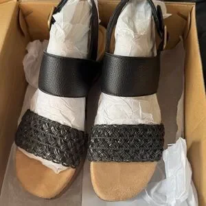 Elegant black wedge sandals with sleek design. Ideal for everyday wear.