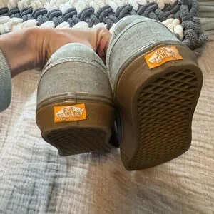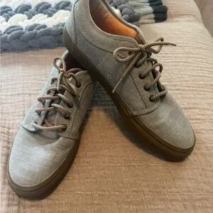 Stylish Vans sneakers in gray with brown accents. Lace-up design for a secure fit. Ideal for casual wear.