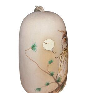 Hand Painted Ceramic Bell Owl Pine Tree Moon Rustic Home Decor Signed Stefano