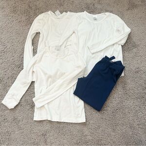 Hanna Andersson set bundle lot - 3 Off White Cotton long sleeve tops & 1 Capri Navy Blue leggings Sz 8