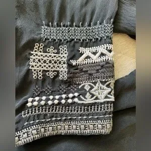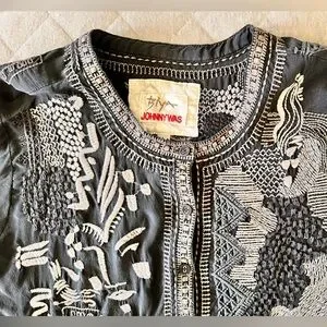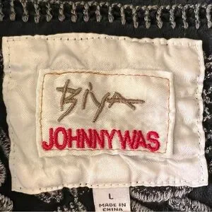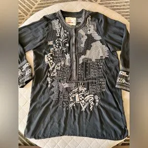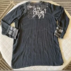 JOHNNY WAS BIYA Large Black Silk Embroidered Long Tunic