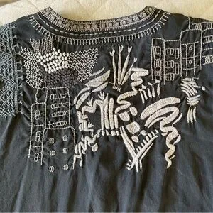 JOHNNY WAS BIYA Large Black Silk Embroidered Long Boho Tunic