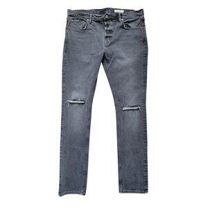AllSaints Bannock Cigarette Black Denim Distressed Button Fly Jeans Men's W36