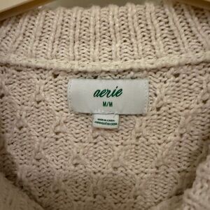 aerie Cream Crew Neck Sweater with Textured Waffle Bubble Knit Oversized Chunky