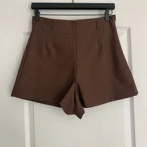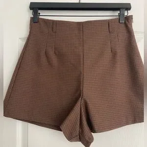 Zara brown plaid high waist shorts in size medium. In excellent condition with no stains, tears or pulls. Only worn once. Waist is 14.5”. Length is 15”. Fully lined with belt loops and side zip.