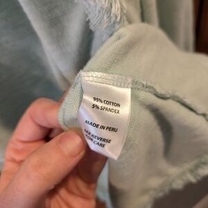 Stylish light green cardigan with options for a tie-front, open cardigan or wrap top style. Features fringe detailing on the edges. Perfect for layering. light green / seafoam green color. cotton blend material, super soft and stretchy. brand: spartina 449. size: large. condition: used, good.