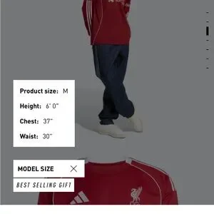 Adidas sizing chart for accurate fit. Includes measurements for chest, waist, and hip.