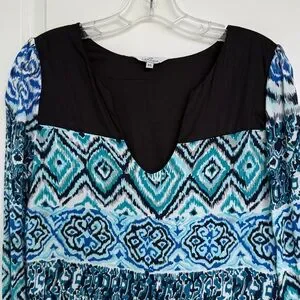 Women’s original LaRoque Dress size XS 3/4 length sleeve blues & black abstract