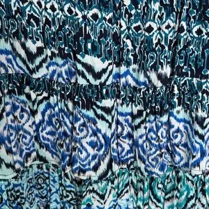 Gently worn, Stylish women's dress featuring a vibrant blue and black pattern. Perfect for any occasion, size XS