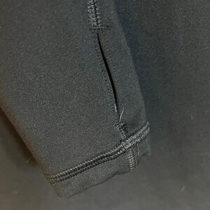 Sleek black Nike top with long sleeves. Features subtle logo on sleeve. Ideal for active wear.