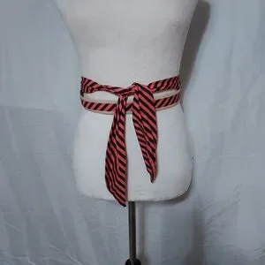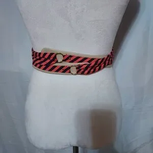 Stylish Talbots belt with bold pink and black stripes. Ideal for a fashionable touch.
