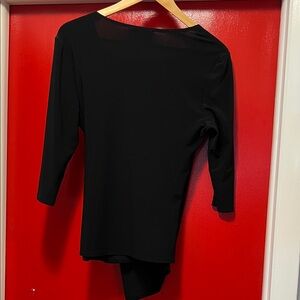 Chic black top with a unique ring accent. Ideal for versatile styling. Size 12 black top by Joseph Ribkoff.