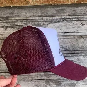 Embrace your love for The Judds with this stylish vintage trucker hat. Its maroon and white design, featuring a floral-themed logo, makes a bold statement. Crafted from 100% polyester by Otto, it's both durable and comfortable. With an adjustable fit, this hat ensures a snug and secure wear for most head sizes.