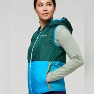 Cotopaxi Women's Green and Blue Hooded Vest -Reversible