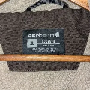 Durable brown sleeveless work vest with front pockets and zip closure.