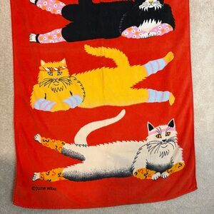 Vintage June Sobel Beach Towel Cat Exercise 57”x32” Red 80s Yoga