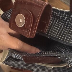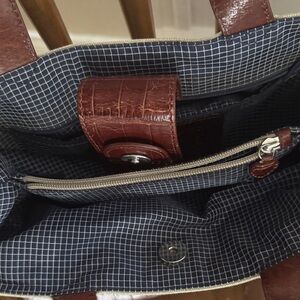 Charming Brighton tote with heart details. Elegant tan and brown design. Perfect for everyday use.