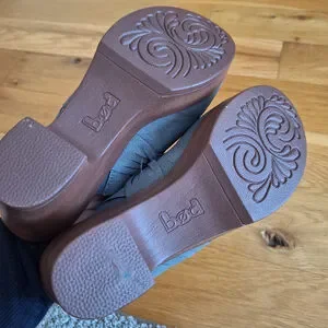 BOC BORN CONCEPT Clogs Womens Sz 8M Gray Faux Suede Block Heel Shoes Western Country Boho.