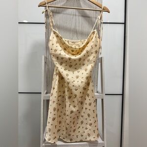 Brand New Champagne Beige Floral Cowl Neck Satin Slip Mini Dress Sleeveless