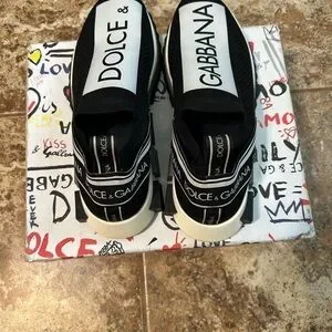 Dolce & Gabbana Black and White Slip-On Sneakers