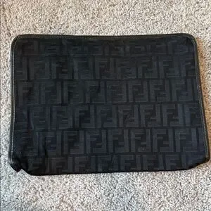 Vintage 80s Fendi Black Monogram Envelope Clutch
