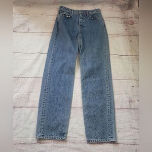 Button fly high rise jeans in main attraction wash. In very good condition.