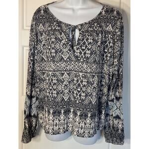 Lucky Brand Blue White Geometric Long Sleeve Soft Top XL