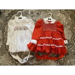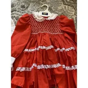 Vtg Polly Flinders Girls Sz 3T Smocked Dress Holiday Christmas Red White