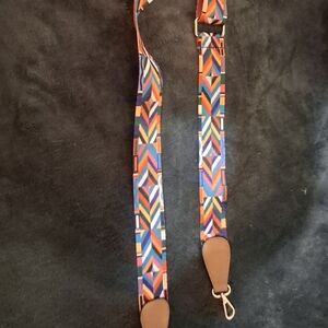Multi-color southwestern print and striped print guitar style crossbody strap