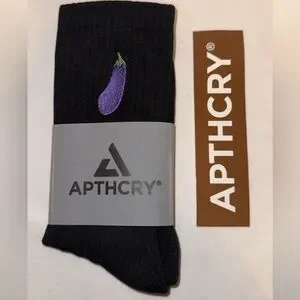 Apthcry Black Socks with Purple Eggplant