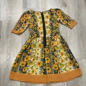The dress showcases beautiful orange and green accents, perfect for any occasion.