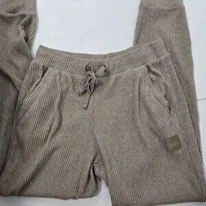 Alo Yoga Size M Muse Ribbed Knit Jogger Sweatpants Lounge Taupe