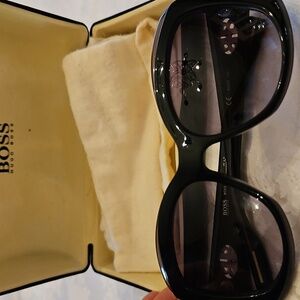 Hugo Boss Glossy Black Women's Oversize Sunglasses. Vintage Pristine