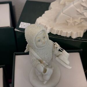 Charming holiday figurines by Department 56. Features playful characters in cream. Perfect for festive decor. 21 in total in original boxes in good condition.